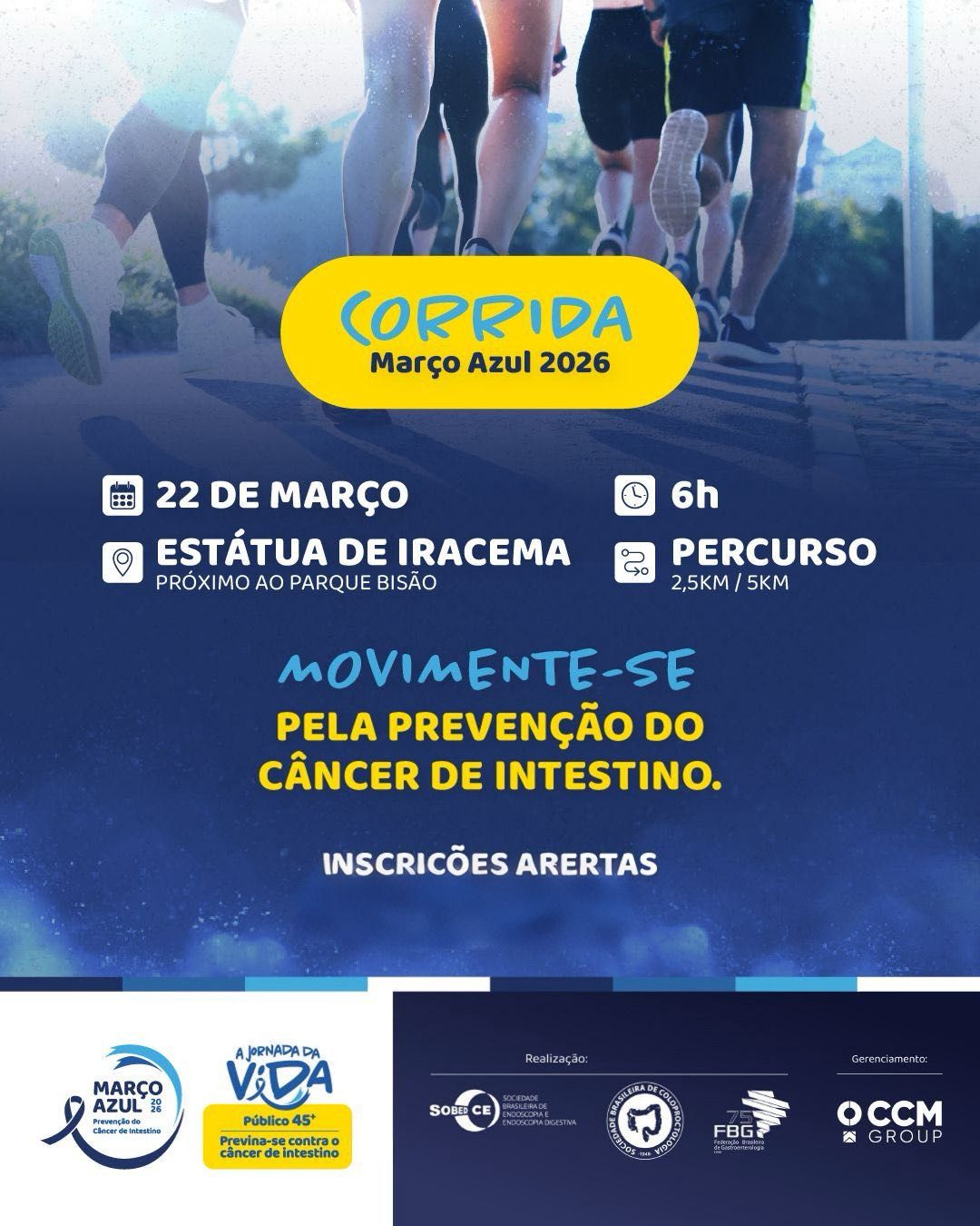 O Gastroenterologia e presidente da Sociedade Brasileira de Endoscopia Digestiva – Ceará (SOBED-CE), Dr. Alessandrino Terceiro, explica que a campanha Março Azul busca ampliar o debate sobre o câncer de intestino e a corrida reforça a importância de hábitos saudáveis e da atenção aos sinais do corpo. “A proposta é mobilizar a comunidade em torno de uma causa de grande relevância para a saúde pública e mostrar que atitudes simples, como praticar exercícios regularmente, contribuiem para a promoção da saúde”.